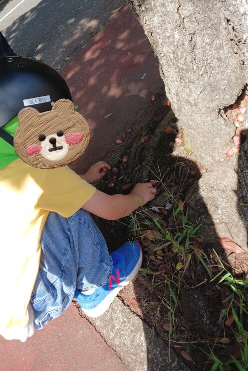 自転車よりもお散歩をして、どんぐりや虫を観察する子も居て、