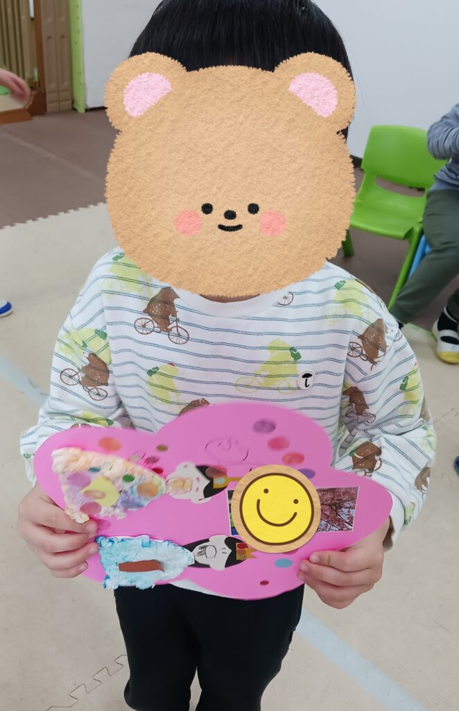先日色水遊びで作成した着物に、お顔を描いてひな人形を製作しました✨